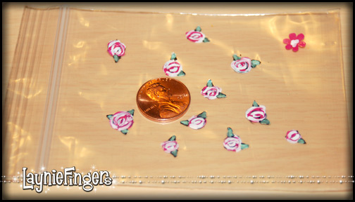 Also, you could place one of these on the edge of your nail, secure 1/2 the rose onto your nail with polish or glue, then use your nail file to file straight down at the edge of the nail, gently removing what's left. One more coat of top coat so seal it all in and you'd be good to go!
